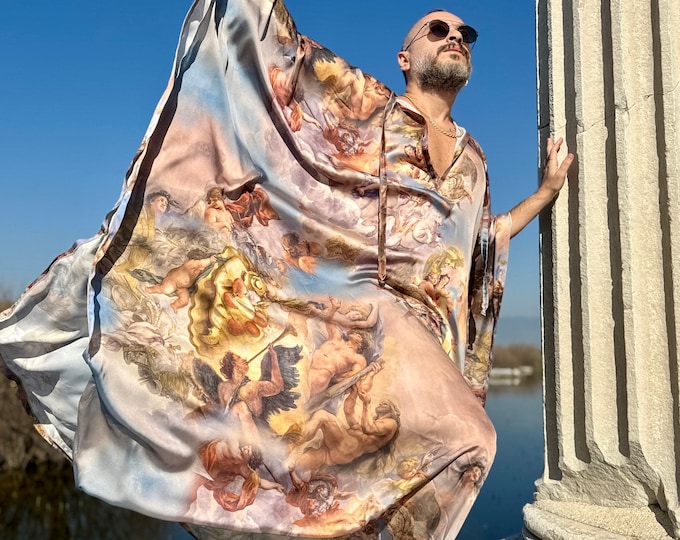 Mens caftan Viscose caftan for men, kaftan tunic pool party , plus size kaftan lgbt pride kaftan boho wedding kaftan