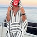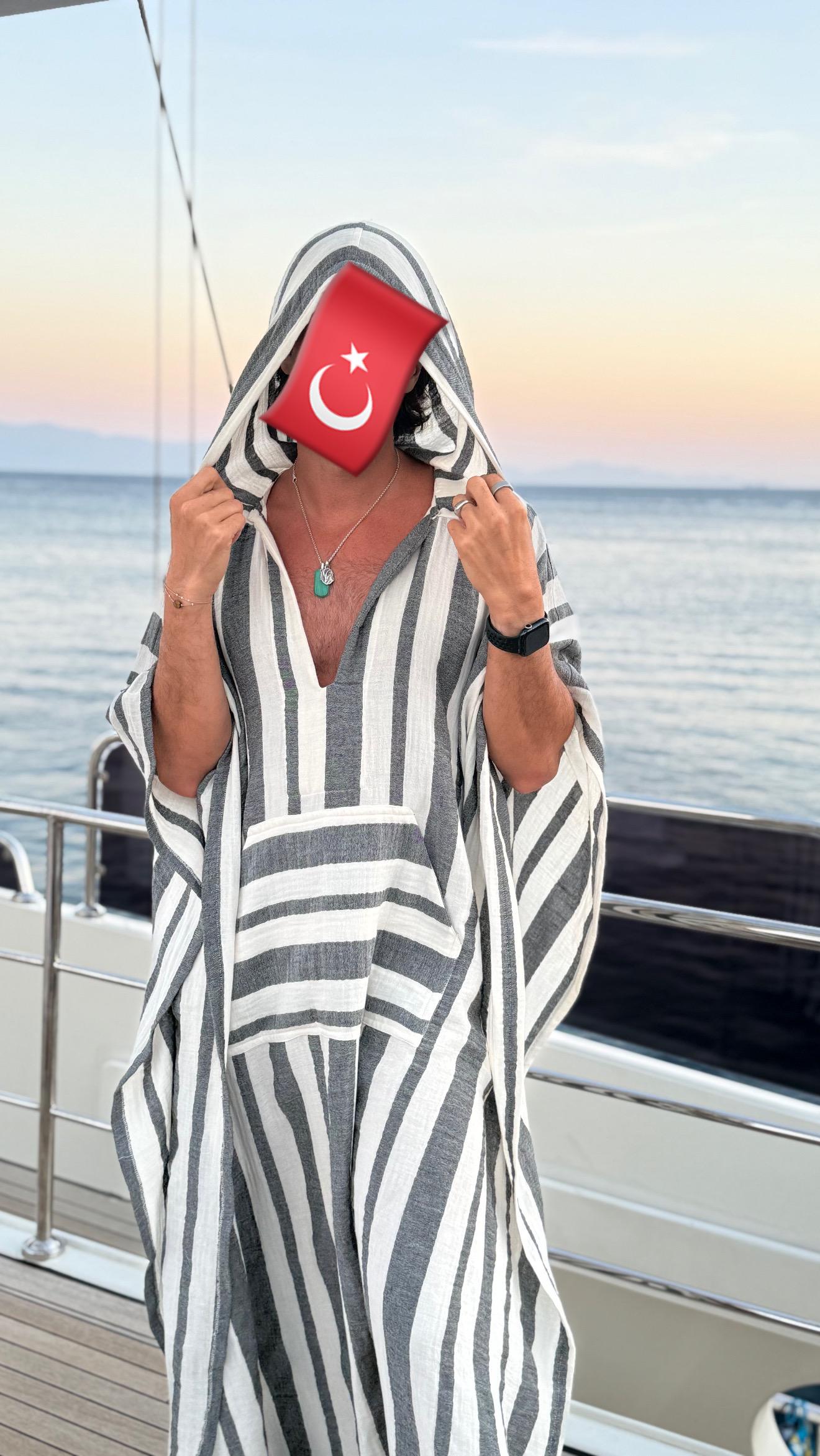 Mens muslin cotton kaftan with HOOD / muslin fabric authentic CAFTAN for men / greek style kaftan / loose kaftan gray striped
