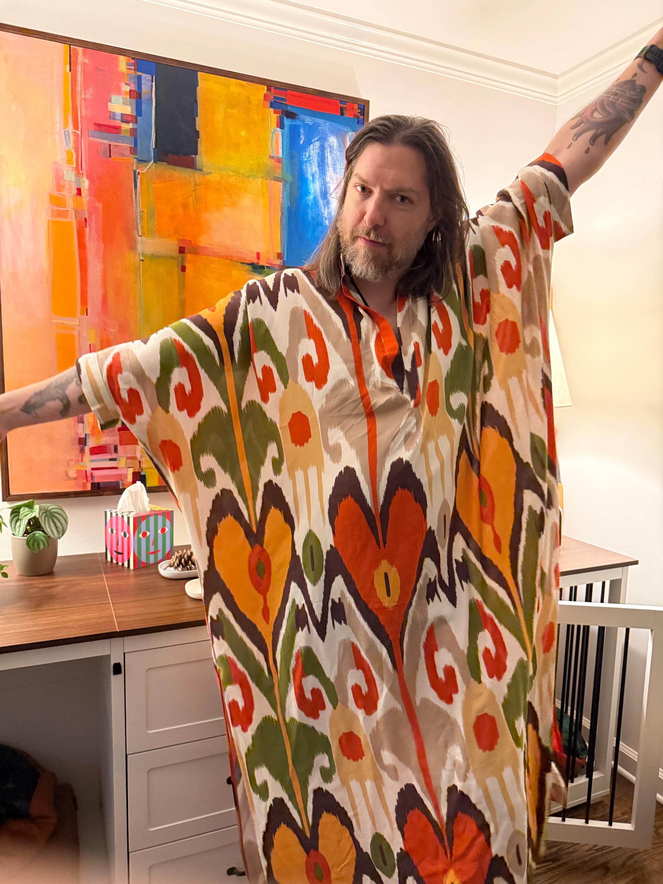 New Design! Mens Kaftan / ikat viscose greek style kaftan for men / long tunic pool party caftan